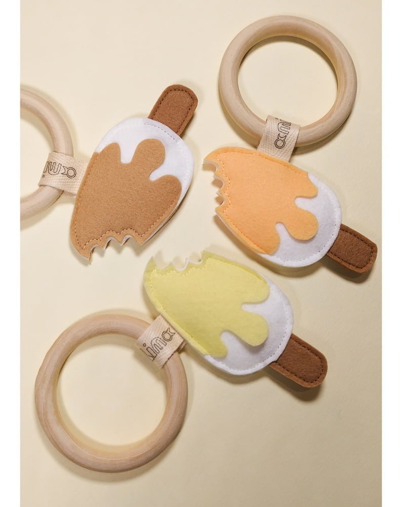 Ο υψηλής ποιότητας (ελεγμένος σύμφωνα με το Ευρωπαϊκό πρότυπο ασφαλείας EN 71-3: 2019) ξύλινος μασητικός κρίκος βοηθά στην ανακούφιση των ερεθισμένων ούλων του μωρού και είναι ιδανικός για τα μικρά χεράκια του. Μαζί με το τσόχινο παιχνίδι, βοηθούν στην ανάπτυξη και βελτίωση του συντονισμού χεριού – ματιού και στις πρώιμες κινητικές δεξιότητες.