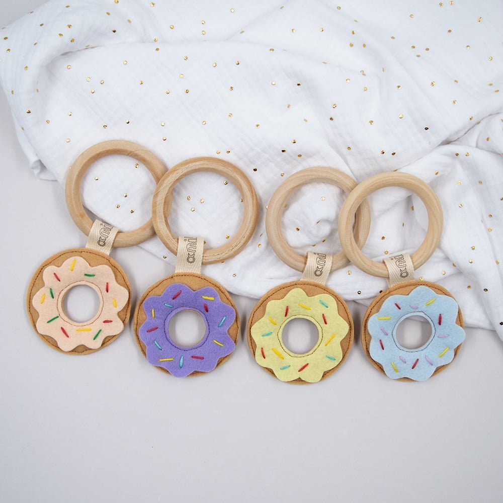 Ποικιλία τσόχινων παιχνιδιών και μεγέθους ξύλινου κρίκου για να καλύπτουν τις ανάγκες του κάθε μωρού.