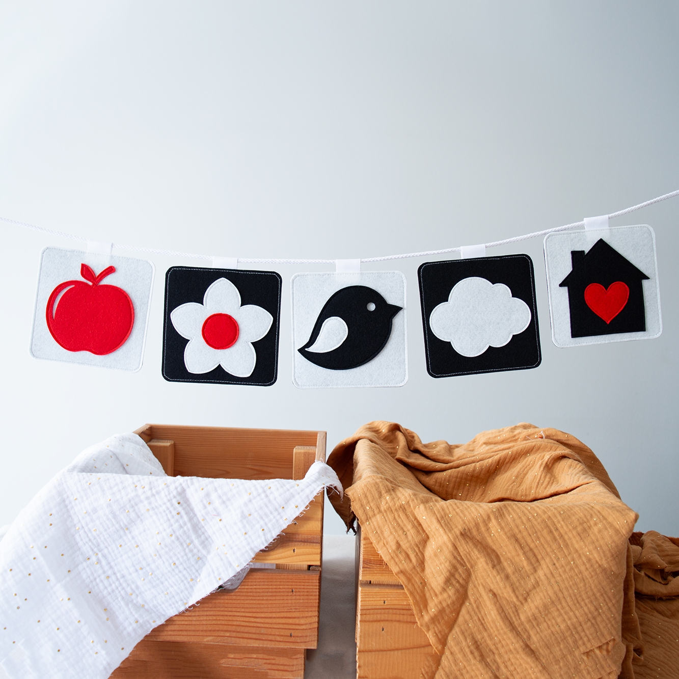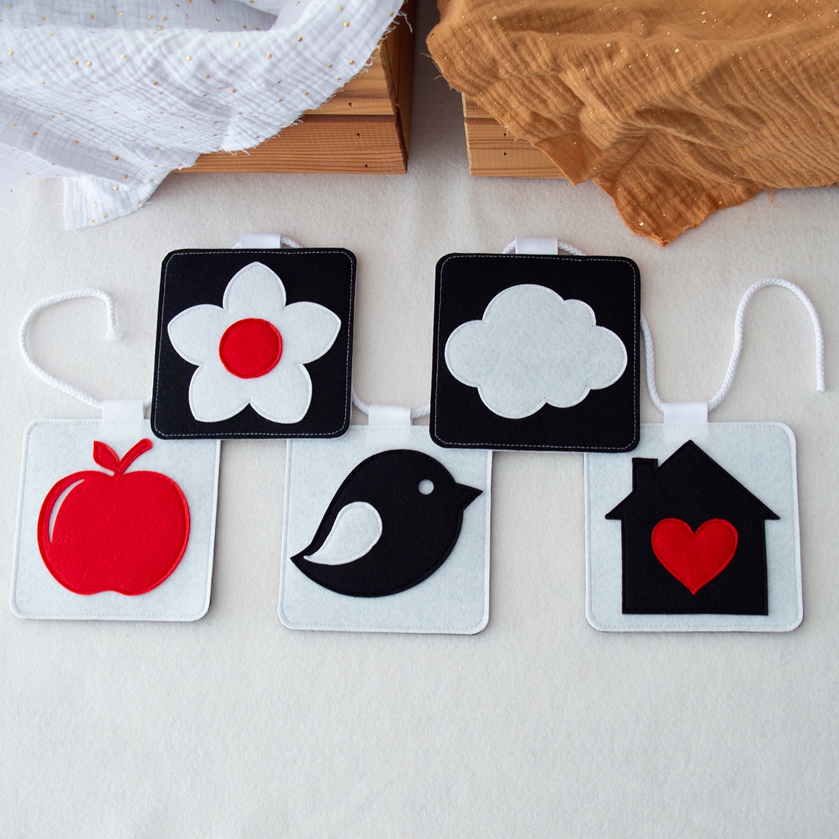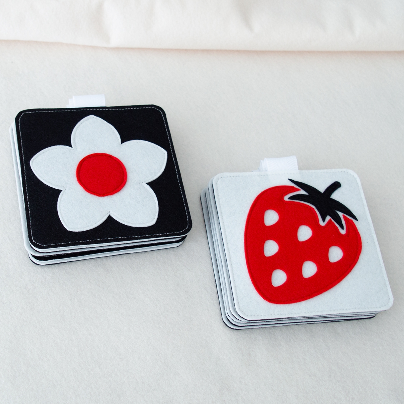 Τσόχινες κάρτες διπλής όψης, σχεδιασμένες ειδικά για τα πρώτα στάδια ανάπτυξης του μωρού.
