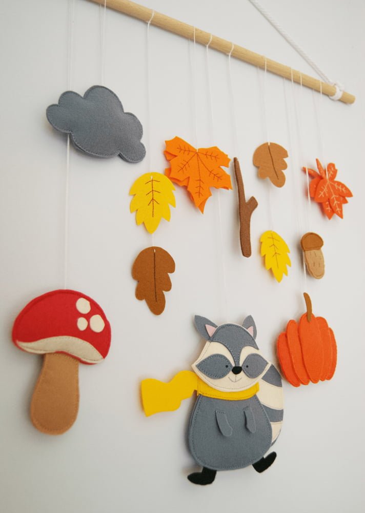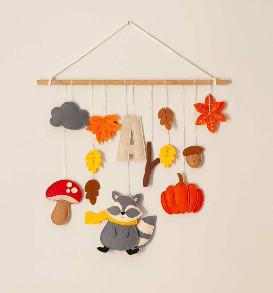 Διακοσμήστε το παιδικό δωμάτιο με το Κρεμαστό Τοίχου – Ρακούν στο Φθινόπωρο. Προσθέτει ζεστασιά και χρώμα στο χώρο με φθινοπωρινή μαγεία!