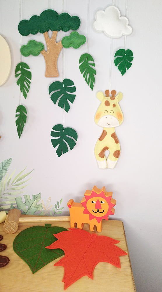 Αναβαθμίστε τη διακόσμηση του παιδικού δωματίου με το Κρεμαστό Τοίχου – Σαφάρι με 2 Ζώα. Αυτό το διακοσμητικό τοίχου μετατρέπει το παιδικό δωμάτιο σε μια μαγευτική σαβάνα, προσφέροντας μια μοναδική ατμόσφαιρα.