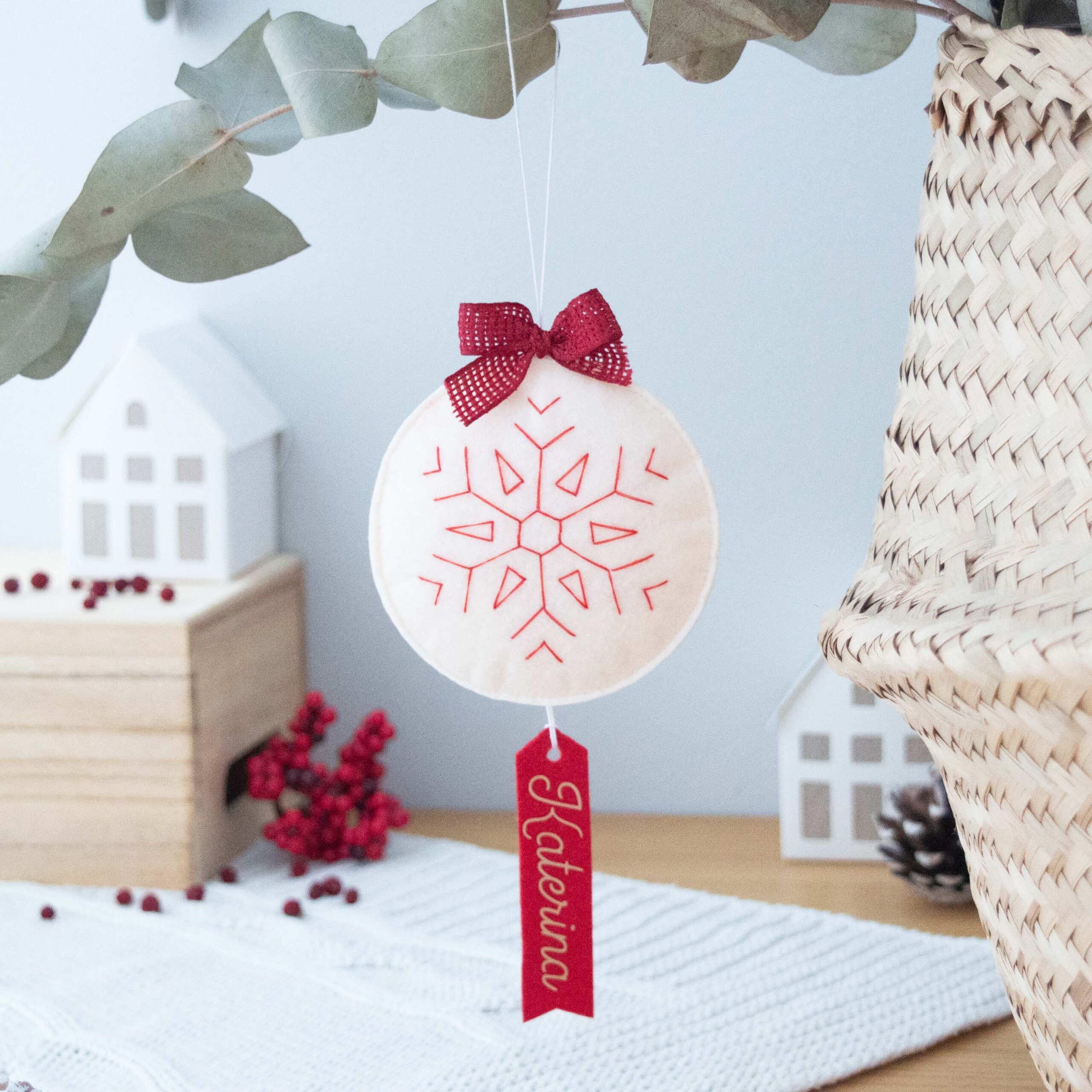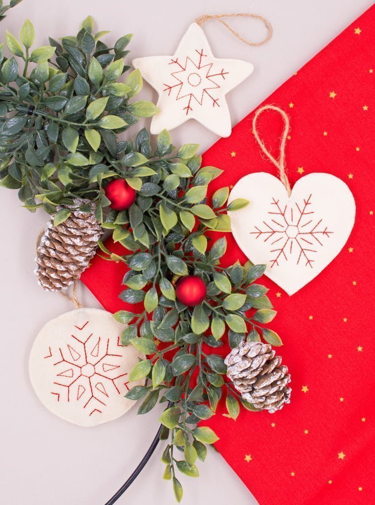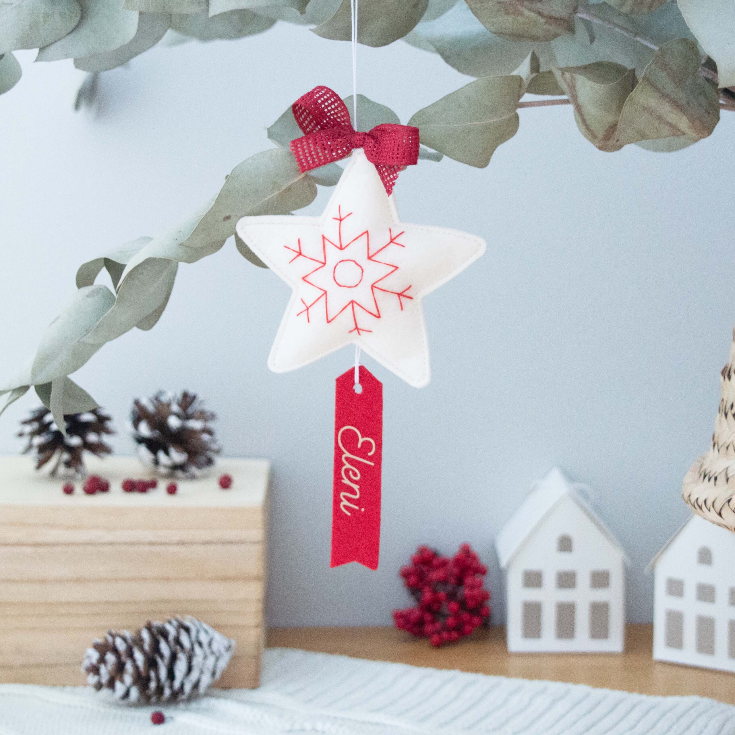 Στολίστε το Χριστουγεννιάτικο δέντρο σας με τα απαλά τσόχινα στολίδια διαλέγοντας μεταξύ μικρών σπιτιών και χιονονιφάδων. Ή και τα δυο! Δημιουργήστε μια γιορτινή ατμόσφαιρα για τα παιδιά και την οικογένεια.