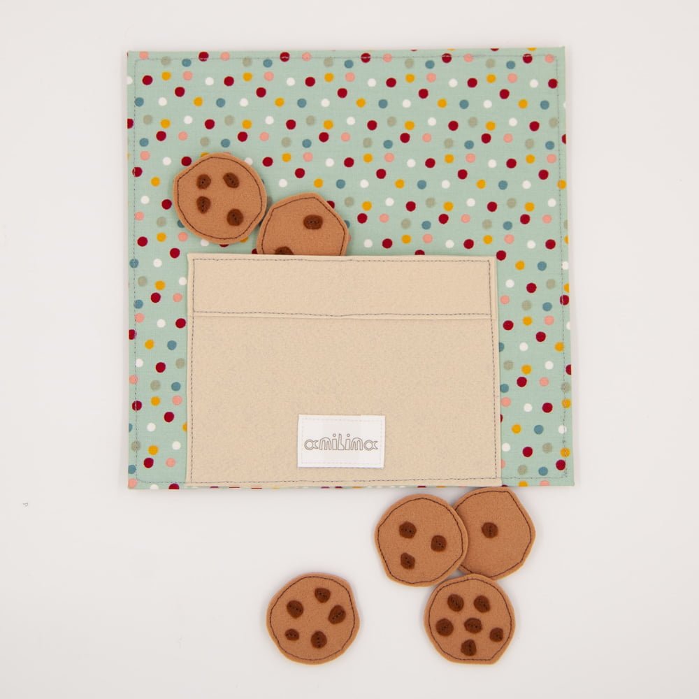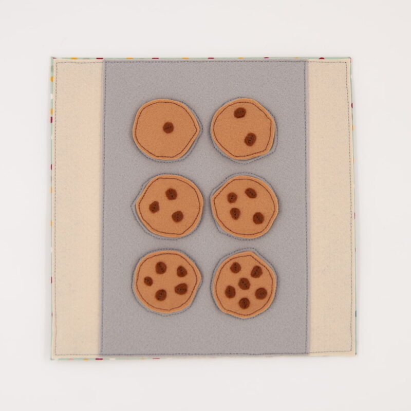 Εκπαιδευτική καρτέλα με μπισκότα για να μάθουν τα παιδιά τους αριθμούς από το 1 μέχρι 6, ενώ διασκεδάζουν. Μετρούν τα μικρά κομμάτια σοκολάτας του κάθε μπισκότου και τα τοποθετούν στη σωστή θέση του δίσκου/καρτέλας. Η καρτέλα αντιστοιχίσης βοηθά στην εκμάθηση των αριθμών, στη μέτρηση και το άθροισμά τους. Μπορεί να χρησιμοποιηθεί και ως παιχνίδι ρόλου, όπου ο μικρός ζαχαροπλάστης ψήνει τα λαχταριστά μπισκότα του!