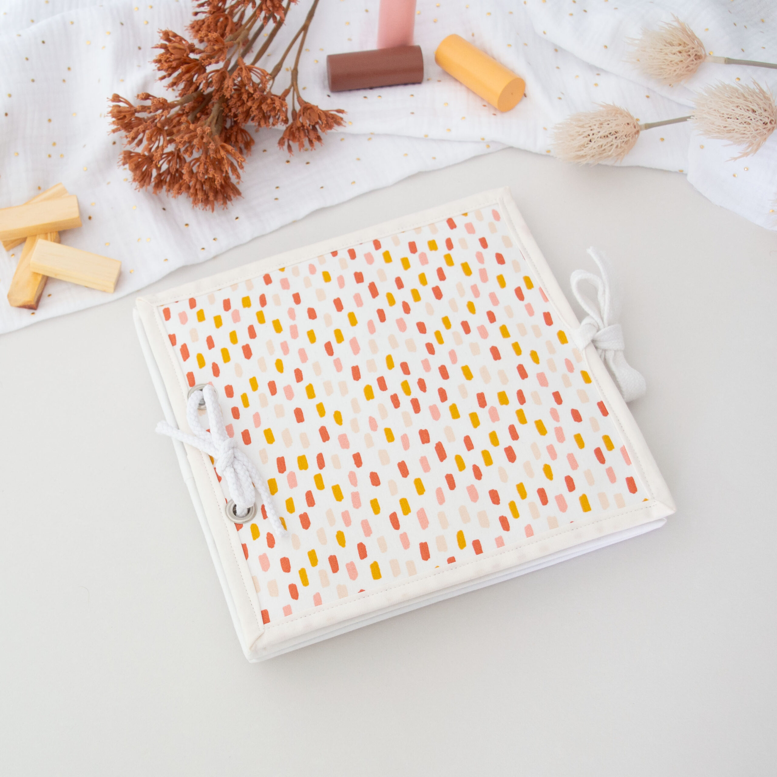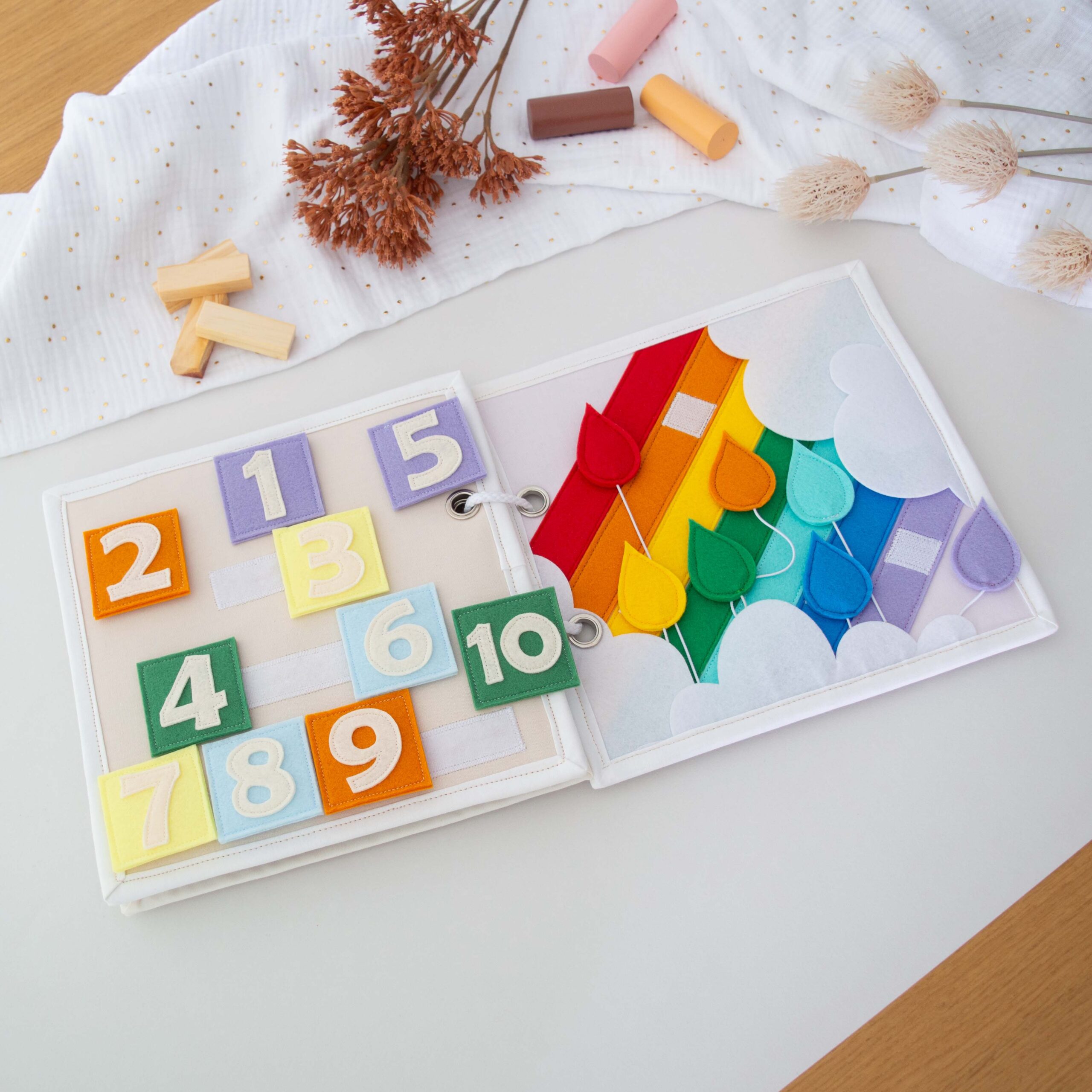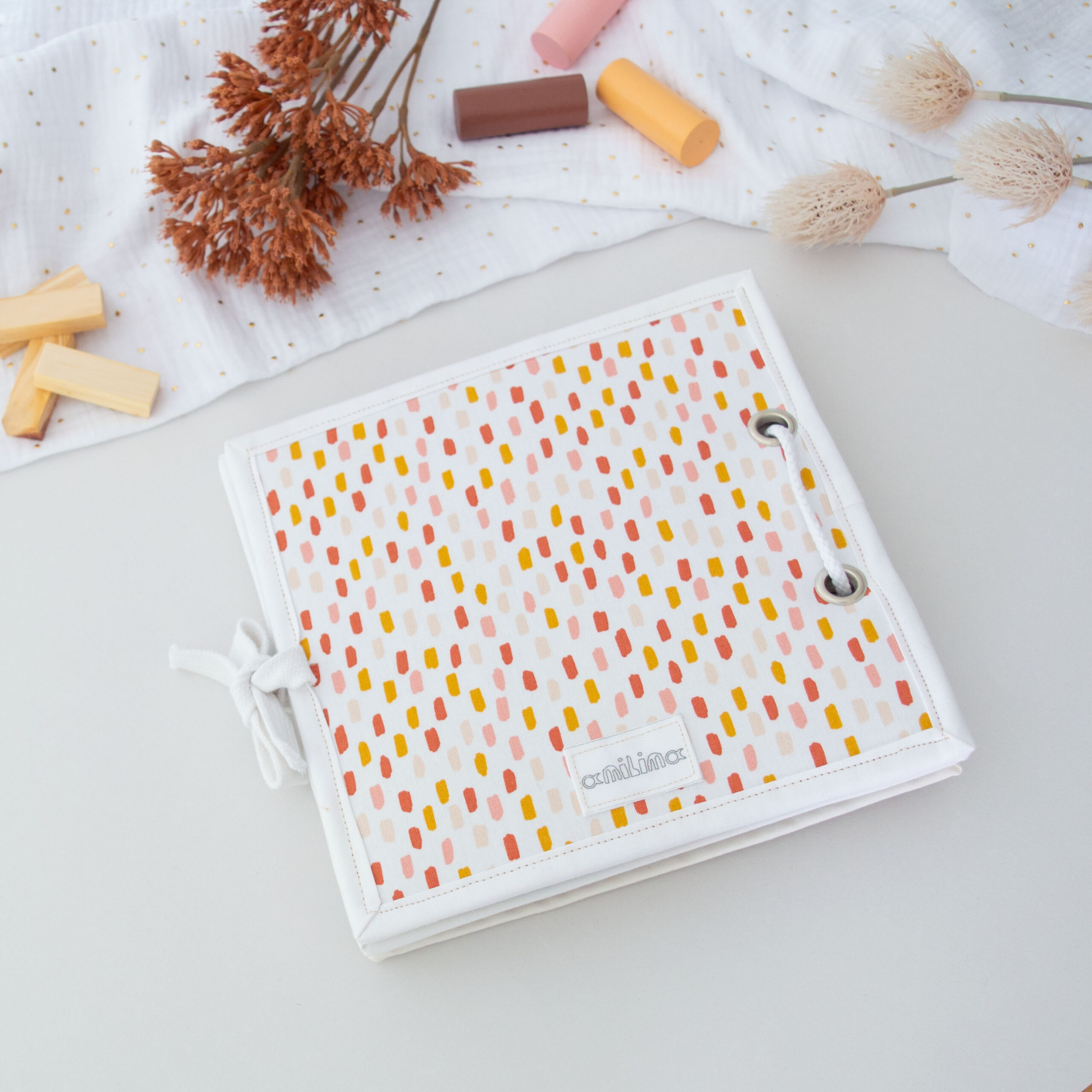 Υφασμάτινο βιβλίο δραστηριοτήτων, σχεδιασμένο για να ενισχύσει την ανάπτυξη και τη διασκέδαση του παιδιού! Περιλαμβάνει 4 διαφορετικές δραστηριότητες. Ένα διασκεδαστικό εργαλείο που θα κρατήσει το μικρό σας απασχολημένο, ενώ μαθαίνει και εξελίσσεται!